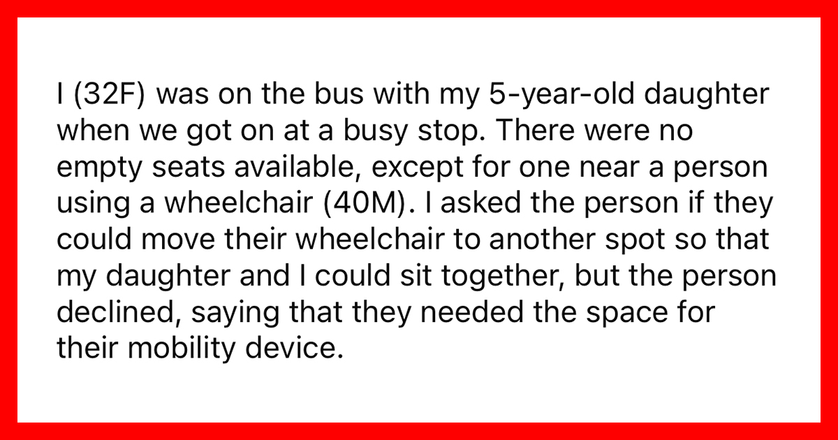 Entitled Parent Gets Roasted for Asking Person in Wheelchair to Move So She Could Sit on Bus – Memebase