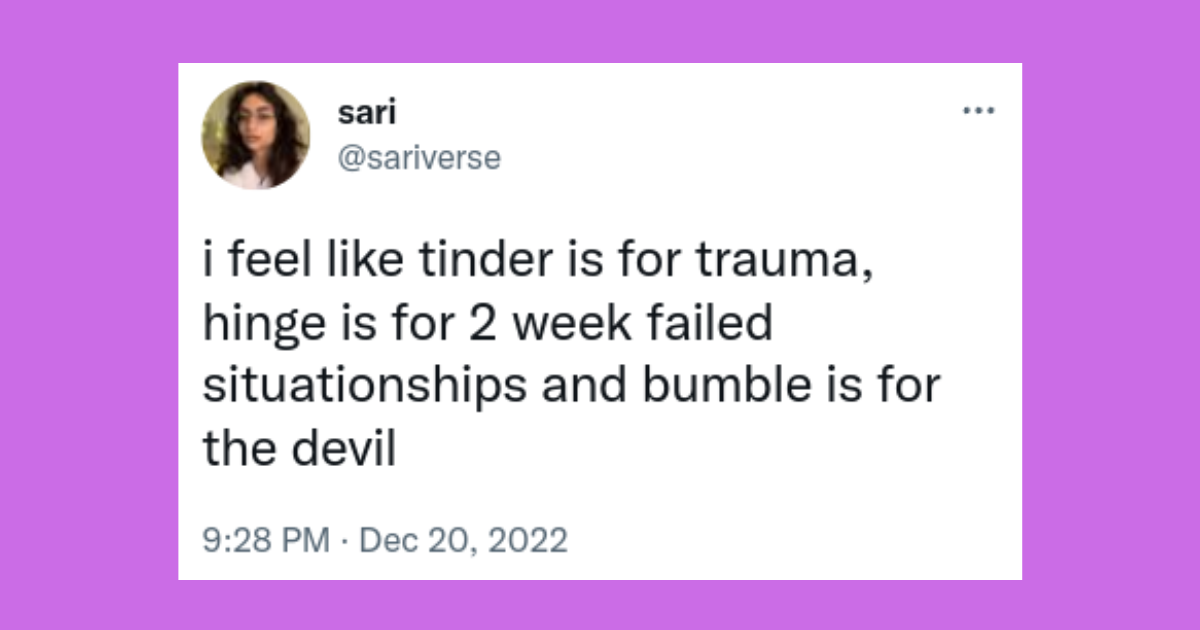like-tinder-is-trauma-hinge-is-2-week-failed-situationships-and-bumble-is-devil-928-pm-dec-20-2022