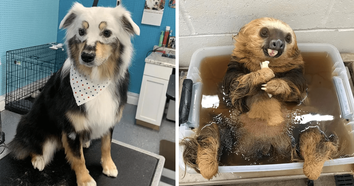 of-the-week-thumbnail-includes-two-pictures-including-a-colorful-dog-and-a-sloth-taking-a-bath